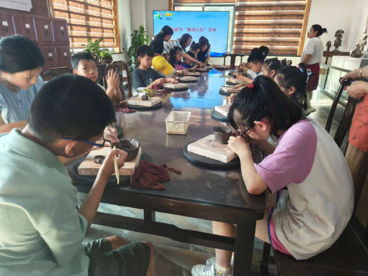 繆家村的孩子們正在手工制作泥塑(曾慶華 攝)