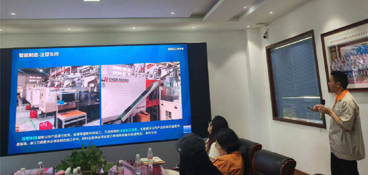 嘉善三思光電技術有限公司技術經理楊順興(右一)介紹企業技術情況 (曾慶華 攝)