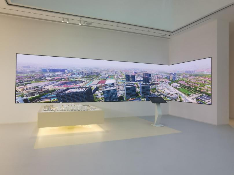 步入商務區,首先映入眼簾的是一塊L型無縫轉角超大屏幕,呈現的是與沙盤中園區別無二致的“虛擬空間”。超精細三維數字化復原,以及利用unity3D系統1:1還原了城市模型。沉浸式效果、虛實交融的數字技術、再到小間距LED顯示屏與數字孿生技術的良好結合,使其成為“智慧城市”的重要情報看板。從地圖數據、城市設施、建筑要素再到城市運行數據,緊密貼合城市管理各業務需求,為城市的綜合調度管理提供精準清晰的可視化呈現;支撐大規模復雜三維場景的快速構建,滿足智慧城市各領域的廣泛而豐富的業務需求。