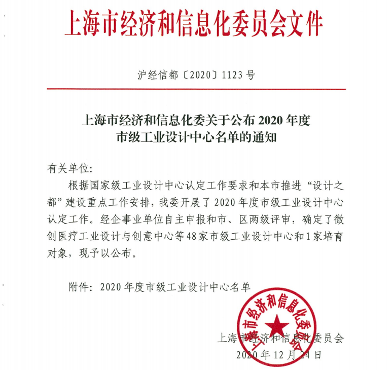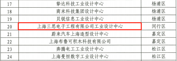12月24日,上海市經(jīng)信委正式發(fā)布“2020年度市級工業(yè)設(shè)計中心”名單,上海三思成為48家市級工業(yè)設(shè)計中心之一,這是對三思綜合實(shí)力的又一次印證。