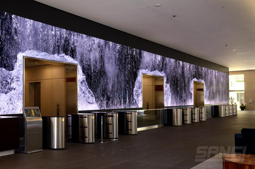 精良的顯示品質(zhì)配合精良的數(shù)字內(nèi)容,將冰冷的建筑墻改造為超現(xiàn)實(shí)的神奇環(huán)境,讓每一位經(jīng)過這道墻的辦公者抬頭即可見國家森林、奔騰瀑布、延綿雪山、夢幻雪景等絕美景色,讓人有一種進(jìn)入迷人超現(xiàn)實(shí)環(huán)境的夢幻體驗(yàn)。