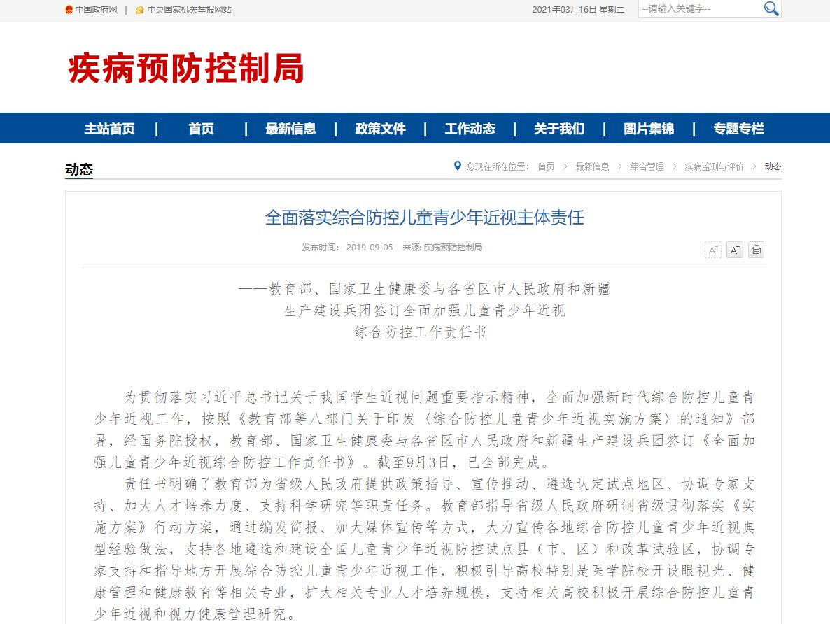 2019年,教育部、國家衛(wèi)生健康委與多個(gè)省級人民政府簽訂《全面加強(qiáng)兒童青少年近視防控工作責(zé)任書》,到2023年。力爭實(shí)現(xiàn)全國青少年總體近視率在2018年的基礎(chǔ)上每年降低0.5個(gè)百分點(diǎn)以上,近視高發(fā)省份每年降低1個(gè)百分點(diǎn)以上。