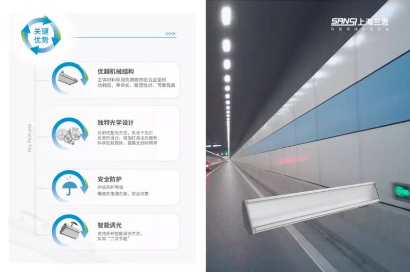 已承接過包括港珠澳大橋海底隧道在內1700多條隧道照明工程的上海三思,繼續發揮產品、技術及系統等綜合優勢,為西安奧體隧道提供全方位的LED隧道照明系統等綜合解決方案。