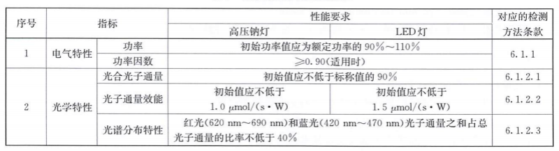 規(guī)范中,規(guī)定了溫室植物補(bǔ)光燈的術(shù)語(yǔ)和定義、基本要求、質(zhì)量要求、檢測(cè)方法和檢測(cè)規(guī)范,對(duì)高壓鈉燈或LED燈等適用植物補(bǔ)光燈具的性能做了具體要求。