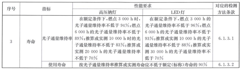 光子通量維持率:在規(guī)定條件下,在特定時(shí)間植物補(bǔ)光燈所發(fā)出的光子通量與初始光子通量的比值,用百分比表示。在特定條件下,高壓鈉燈實(shí)測(cè)20000h的光子通量維持率不低于70%,LED燈實(shí)測(cè)30000h的光子通量維持率不低于70%。
