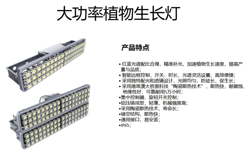 規(guī)范中要求燈具外殼應(yīng)具防塵、防水性能,三思植物補(bǔ)光產(chǎn)品達(dá)到或超過(guò)IP65防護(hù)等級(jí),在封閉潮濕的環(huán)境中運(yùn)行自如。更為重要的是三思LED植物生長(zhǎng)燈不同于傳統(tǒng)鋁基板燈具,它采用陶瓷散熱技術(shù),將LED芯片直接貼在陶瓷上,熱量通過(guò)空氣對(duì)流直接散發(fā),散熱性能高于傳統(tǒng)Mcpcb LED燈具,光衰速度慢,使用壽命可達(dá)50000小時(shí)。