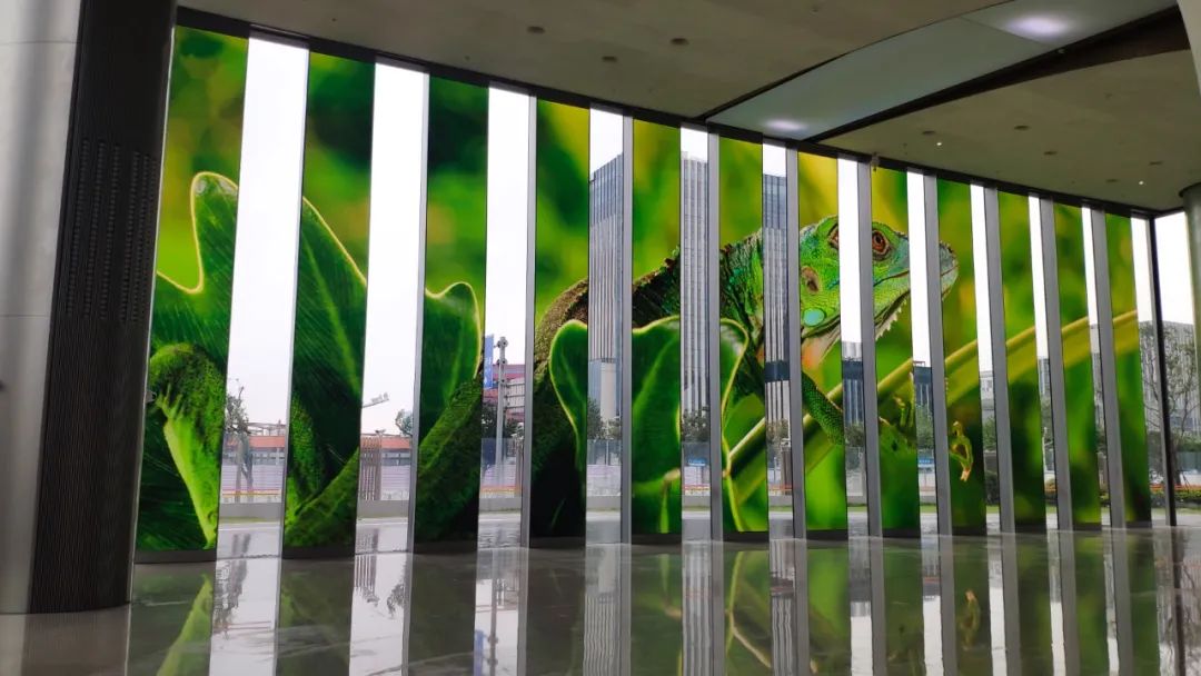 屏體超輕薄、超通透,高亮度和清晰的畫質,立于前觀看,畫面就像懸浮于玻璃幕墻之上,具有很強的視覺震撼感。
