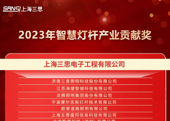 2024年1月10日,中國智慧燈桿產業頗具有影響力獎項——智慧燈桿產業年度大獎正式出爐。上海三思電子工程有限公司憑借在智慧燈桿領域的綜合實力及對行業的貢獻度,摘得“智慧燈桿產業貢獻獎”和“智慧燈桿產業創新獎”兩項年度大獎!