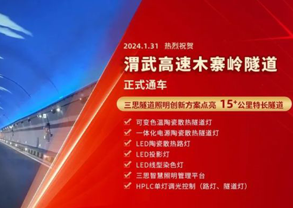 公司動態 /2024-01-311月31日,木寨嶺特長隧道正式建成通車,標志著渭武高速及全長2650公里的南北大動脈蘭海高速公路也將迎來全線貫通。在國家鼓勵“交通+文旅”融合發展的大背景下,經過充分調研和論證,三思繼續發揮產品、技術及系統等綜合優勢,助力將其打造為文旅融合的網紅打卡隧道,更好滿足人民群眾的多元出行需求。
