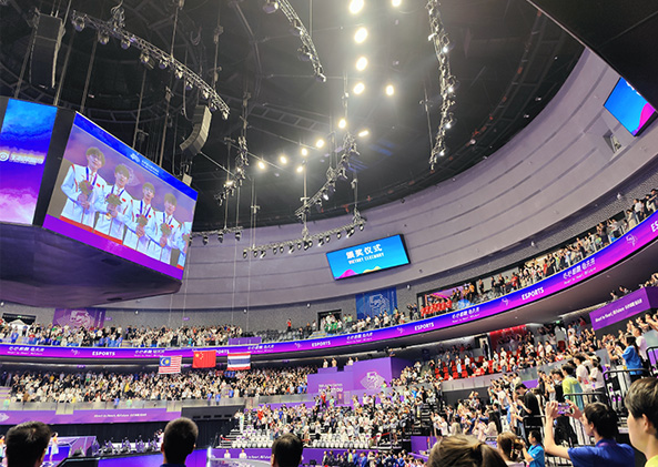在充滿著歡呼聲的場館內,多塊高清LED大屏與環形屏幕播放著中國隊的風采。這些見證并記錄著亞運電競首金誕生的屏幕,來自閔行的一家大型LED科技型企業——上海三思電子工程有限公司(以下簡稱“三思”)。