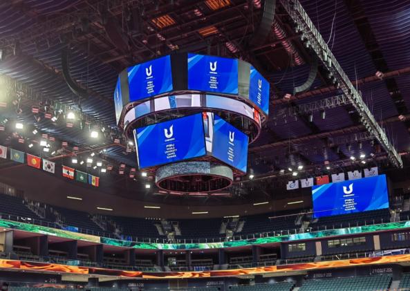 2023.7.29-8.5,第31屆世界大學(xué)生夏季運動會乒乓球比賽將在成都高新區(qū)體育中心多功能體育館正式打響!上海三思以優(yōu)質(zhì)的顯示屏產(chǎn)品和強大的定制服務(wù)能力,為場館提供了可升降斗型屏,及端屏、看臺環(huán)屏等產(chǎn)品和系統(tǒng),顯示總面積近900㎡,為精彩賽事增光添彩。