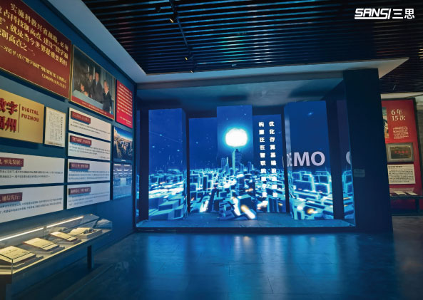 顯示屏將頂部、墻面和地面連為一體,視覺上形成完整的空間,視頻畫面加上聲光電技術(shù)的共同作用,滿足了沉浸感的需求,向所有參觀者更生動地展現(xiàn)了福州的騰飛故事,激發(fā)參觀者對于福州歷史的求知欲,以身臨其境的體驗融入福州故事中,形成強烈、有趣的互動。