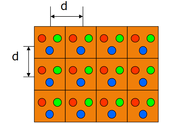 點間距,相鄰兩個像素點之間的中心距離;像素密度,每平方米顯示屏上的像素個數。